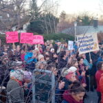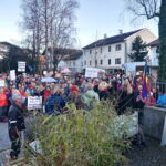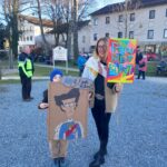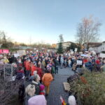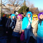 In ihren weiteren Eindrücken fasst sie zusammen: “Seit einiger Zeit hier heimisch, kenne ich diverse Leute; da kamen Menschen aus ganz unterschiedlichen Kreisen mit dem Wunsch nach Erhaltung unserer Demokratie, gegen Hetze und Gewalt, Ausgrenzung und Rassismus zusammen. Die einen trugen Schilder mit „Sei ein Mensch“, erinnernd an den Holocaust-Überlebenden und Vater Leon von Marcel Reif (Rede im Bundestag zur Erinnerung an die Shoah). – Andere erinnerten daran, dass wir Solidarität statt Hetze leben sollten: So auch Pfarrer Mirko Hoppe, Evangelische Kirche, der mahnte, dass Hass eine starke emotionale Bindung bedeute und (sinngemäß) diese doch niemand mit der AfD eingehen wolle. Die „Omas gegen rechts“ (-radikalismus) zeigten Präsenz, neben Bannern der Linken und der Antifa, letztere mit einem kurzen prägnanten Einsatz. Besonders stachen die Mitarbeiterinnen der Priener Bücherei ins Auge mit ihren bunten Perücken – eben nach dem Motto „Prien bleibt bunt“. Ein Chor rundete das Programm ab.