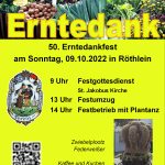 Bereits zum 50. Mal kann der Volkstrachtenverein Röthlein sein Erntedankfest feiern. Heuer findet es am Sonntag, den 09. Oktober statt. Der Festgottesdienst um 9 Uhr in der St. Jakobus Kirche ist ein guter Anlass für die reichhaltige Ernte zu danken.