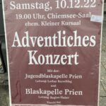 Fotos: Hötzelsperger – 1. Priener Blasmusikanten im Chiemsee-Saal – 2. Plakat Adventliches Konzert am 10. Dezember.