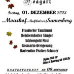 Mitwirkende sind die Frasdorfer Tanzlmusi, die Reichersdorfer Sänger, die Schlossgold Musi, der Rosmarin-Dreigesang un das Harfenduo Fischer-Schauer. Beginn ist um 20 Uhr, Einlass und Bewirtung gibt es ab 18 Uhr.