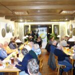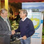Archiv-Fotos 2019: Hötzelsperger – 1. Verabschiedung von Dieter Bezold (vormaliger Leiter der Polizeiinspektion Prien) durch Vorsitzenden Klaus Daiber – 2. Willkommens-Blumen für dessen Nachfolgerin Karin Walter, sie ist kraft Amtes neues Mitglied in der Vorstandschaft. 3. Weitere Aufnahmen von der damaligen JHV beim Schützenwirt in Prien.