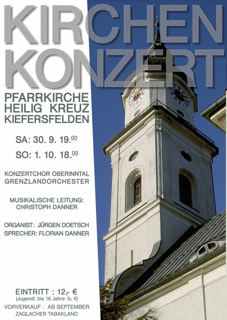 Nach den erfolgreichen Konzerten von 2016 und 2018 wird es in Kiefersfelden in diesem Herbst erfreulicherweise wieder ein Kirchenkonzert mit dem Konzertchor Oberinntal und dem Grenzlandorchester geben.