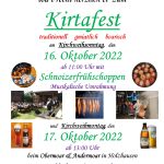Nach drei Jahren Corona-Pause findet in diesem Jahr endlich wieder das traditionelle Kirtafest des Trachtenvereins am Kirchweihsonntag und –Montag statt. Dieses Mal beim Obermoar und Andermoar in Holzhausen. Das Fest beginnt morgen, Sonntag um 10 Uhr (Uhrzeit auf dem Plakat ist falsch) mit einem Schnoizerfrühschoppen der Griesstätter Goaßlschnoizer. Passend dazu werden frische Weißwürste serviert. Natürlich gibt es an beiden Tagen auch wieder die guatn Kirtaschmankerl, wie die frisch gebackenen Kirtanudln, zudem warme Brotzeiten und Kaffee und Kuchen. Auch das süffige Kirtabier fehlt natürlich nicht. Und vor allem auf die Kinder wartet die traditionelle Kirtahutsch. Der Trachtenverein und die Goaßlschnoizer freuen sich auf einen zahlreichen Besuch zu diesem gmiatlichen, boarischen Fest und für eine gute musikalische Unterhaltung ist ebenfalls gesorgt. Am Kirchweihmontag beginnt das Fest um 13 Uhr, bei schlechter Witterung findet die Bewirtung in den Innenräumen des Obermoarhofs statt.