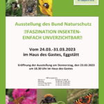 Die Wanderausstellung “Insekten einfach – unverzichtbar“ erklärt, warum Insekten das Fundament im Ökosystem bilden. Auf zehn Rollups zeigen wir, was Insekten in unserem Ökosystem bewirken, warum sie also so wichtig sind und welche Ursachen das gravierende Insektensterben hat. Insekten brauchen ihren Lebensraum. Wie der aussehen muss und was jeder Einzelne dafür tun kann, vermittelt die Ausstellung – Näheres siehe Anlage.