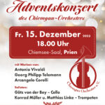 Am Freitag, 15. Dezember um 18 Uhr lädt das neu gegründete Kammerensemble des Chiemgau-Orchesters mit 13 Streichern erstmalig zu einem stimmungsvollen Adventskonzert in den Chiemsee-Saal nach Prien ein.