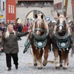 Mit dem Berchinger Roßmarkt zieht eine weitere Traditionsveranstatung nach einer zweijährigen Pause in die Altstadt zurück. Dampfende Rösser, rote Backen, der Geruch von Bratwurstsemmeln und gebrannten Mandeln – der Mittwoch nach Lichtmess – er fällt dieses Jahr auf den 8. Februar – ist Feiertag in Berching. Hunderte Fieranten mit ihren bunten Marktständen säumen die Plätze und Straßen der mittelalterlichen Berchinger Altstadt. Ein Kleintiermarkt mit Hasen und Federvieh begeistert die Jüngsten. Tausende Besucher drängen sich durch den Warenmarkt auf der Suche nach Schnäppchen, Rosswurststemmeln und anderen Leckereien. Stärkster Besuchermagnet sind natürlich die Rösser. Der kommentierte Pferdeauftrieb beginnt um 9:00 Uhr. Etwa 100 festlich herausgeputzte Pferde werden durch das dichtgedrängte Publikum über die Schulstraße in die Stadt geführt und am Reichenauplatz zur großen Pferdeschau aufgestellt. Den größten Eindruck machen dabei die mächtigen Kaltblüter. Zur Landwirtschaft gehört in Bayern die Politik und zum Berchinger Rossmarkt die traditionelle politische Kundgebung um 10:30 Uhr. Als Festredner hat sich der Bayerische Ministerpräsident Dr. Markus Söder sein Kommen zugesagt. Söder ist bereits zum vierten Mal am Roßmarkt in Berching. Und nach der Politik geht’s dann zum Weiterdiskutieren und zu kulinarischen Schmankerln in eines der zahlreichen Gasthäuser. Oder doch lieber eine warme Rosswurstsemmel mit süßem Senf vom Marktstand? Probieren Sie‘s aus.