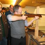 Bürgermeister Daniel Mair machte – assistiert vom Schützenmeister der Frasdorfer Thomasschützen Rupert Marinus Wörndl (links) – den ersten Schuss und eröffnete damit das 24. Frasdorfer Dorfkönigschiessen.