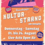 Rosenheim – Musik zwischen Inn und Mangfall am Innspitz – der Kulturstrand geht ab Donnerstag (01.08.2024) in seine mittlerweile vierte Runde. Bis zum 24. August werden immer von Donnerstag bis Samstag täglich ab 17:00 Uhr Konzerte bei freiem Eintritt gespielt.