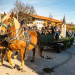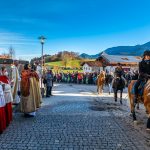 Der Festgottesdienst beginnt um 10:00 Uhr in Roßholzen. Nach dem Gottesdienst findet der traditionelle Ritt mit Segnung der Pferde und Teilnehmer statt. Anschließend sind Teilnehmer und Besucher sehr herzlich zur Brotzeit und zu einigen Stunden frohen Beisammenseins eingeladen. Für Unterhaltung ist mit der Musikkapelle Nussdorf und den Baschtler Goaßlschnalzern gesorgt.