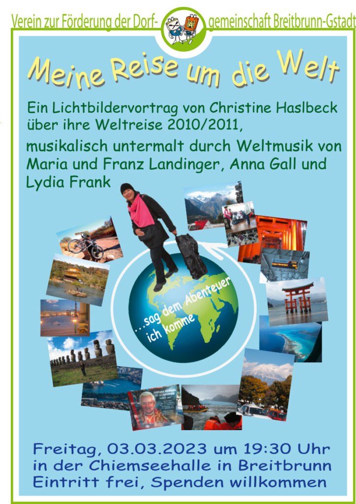 Die Chiemsee Naturführerin Christine Haslbeck nimmt Sie mit auf Ihre Weltreise 2010/2011.