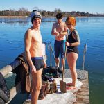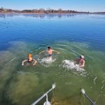 Eis-Schiwmmer-Trio nach Eis-Bruch im Chiemsee-Wasser