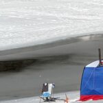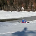 Eisschwimmer mit Zelt am Mittersee