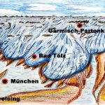 Dort, wo heute Oberbayern im Voralpenland sich befindet, sah es vor ca 12.000 Jahren ganz anders aus.  Die Landschaft  war überdeckt mit Eis.   Temperaturen von  minus 50 Grad  formten eine Eisdecke über die  Alpen.  An der Position Garmisch war der Eisschicht ca 1000 m dick.   Nur die Bergspitzen schauten aus dem Eispanzer.  Vermutlich gab es zu der Zeit kaum Lebewesen.