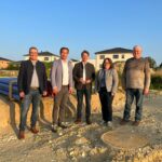 Besichtigung des örtlichen Baugebietes (v.l.n.r.): ELF-Bezirksvorsitzender Michael Hamburger, CSU-Kreisvorsitzender Matthias Enghuber MdL, Dr. Andreas Lenz MdB, CSU-Ortsvorsitzende Martina Fischer, Bürgermeister Alfred Lengler
