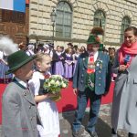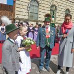 Ein großer Tag war der Empfang der Bayerischen Staatsregierung für den britischen Thronfolger Prinz Charles und seiner Ehefrau Camilla in München für zwei kleine Trachtler aus Oberbayern. Magdalena Lechner und Georg Renner, beide 11 Jahre alt und beide vom Trachtenverein „Almarausch“ Emmering im Landkreis Ebersberg hatten die Ehre, den hohen Gästen aus England einen weiß-blauen Blumenstrauß namens des Bayerischen Trachtenverbandes zu überreichen. Rund 175 Trachtlerinnen und Trachtler aus den Reihen des Trachtenverbandes und ebenso viele Bayerische Gebirgsschützen präsentierten sich bei weiß-blauem Himmel und in Gegenwart zahlreicher Münchner Zuschauer auf dem Platz vor der Münchner Residenz. Georg und Magdalena waren dabei die Jüngsten. Sichtlich waren sie erfreut und etwas aufgeregt, als Bayerns Ministerpräsident Dr. Markus Söder mit seiner Gattin Karin mit dem royalen Besuch aus England auf sie zukam. „Die Übergabe der Blumen und den höflichen Knicks haben wir vorher ausgemacht“, so Magdalena, die sich ebenso wie ihr Bua über das einzigartige Erlebnis freute. Bei Interviews mit verschiedenen Fernsehsendern sagte Georg auf die Frage, ob er sich Prinz Charles so vorgestellt hat, knapp aber klar: „Ja, genauso wie in der Zeitung!“. Als der ganze Trubel vorbei war, ging es noch zu einer Brotzeit ins Hofbräuhaus. Damit endete ein ganz und gar besonderer, noch dazu schulfreier Tag für das freundliche Trachtenpaar aus den Reihen des Bayerischen Inngau-Trachtenverbandes, das für den Bayerischen Trachtenverband royale Hände schütteln durfte.