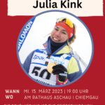 Die Gemeinde mit Tourist Info Aschau i.Chiemgau lädt in Zusammenarbeit mit dem WSV Aschau i.Chiemgau und der Gemeinde Frasdorf am Mittwoch, 15. März 2023 um 19.00 Uhr an das Rathaus Aschau i.Chiemgau zu einer öffentlichen Feierstunde für Doppelweltmeisterin Julia Kink ein. Zweimal Gold und zweimal Silber ist die unglaubliche Bilanz der jungen Athletin die für den WSV Aschau i.Chiemgau an den Start ging. Eine Goldmedaille erkämpfte sich Julia in der Staffel und die zweite, das freut Julia besonders, im Einzel. Auf die Siegertreppe für Silber durfte sich auch mit der Mixed-Staffel und Sprint-Wettbewerb. Eine grandiose Leistung der jungen Sportlerin, die gebührend mit einem festlichen Empfang gewürdigt werden soll. Alle Bürger/innen sind herzlich eingeladen, mit Julia zu feiern. Neben verschiedene Festansprachen gibt es auch noch durch die frisch gebackene Doppelweltmeisterin den Eintrag ins Golden Buch der Gemeinde Aschau i.Chiemgau.