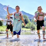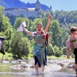 Auch diese drei Schüler der Preysing Grundschule Aschau i.Chiemgau freuen sich total auf die schönste Zeit des Jahres. Magdalena Hendlmeier (Mitte) und die Brüder Hannes (links) und Sebastian Scholl (rechts) sind im Bankerldorf® Aschau i.Chiemgau zuhause. Was kann es da Schöneres geben als mit bester Ferienlaune schon mal beim Nachhauseweg in das kühle Nass der Prien unterhalb von Schloss Hohenaschau (im Hintergrund zu sehen) einzutauchen. Veranstaltungstipps für die Ferien gibt es bei der Tourist Info Aschau i.Chiemgau, Tel. 08052/90490 bzw. unter www.aschau.de.