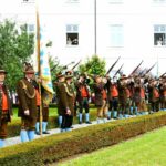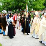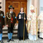 Eindrücke vom heurigen Irmengardfest mit der Gebirgsschützenkompanie Bad Endorf – 1. Von links: Vormaliger Hauptmann Josef Entfellner, Hauptmann Rainer Günthör, Äbtissin Johanna Mayer, OSB, Abt Athanasius Berggold, OSB und Diakon Josef Stürzer – bei der Überreichung einer Kerze der GSK Bad Endorf für Äbtissin und Abt.