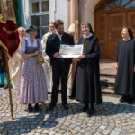 Auf dem Irmengardfest, das jedes Jahr im Juli zu Ehren der Seligen Schutzpatronin des Chiemgaus auf der Fraueninsel stattfindet, überreichten Hauptdarstellerin Barbara Bichler und Erster Vorstand Konrad Schlaipfer von der Theatergesellschaft Bad Endorf den Schwestern des Kloster Frauenwörth einen Scheck in Höhe von knapp 4.000 Euro.