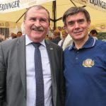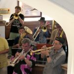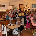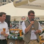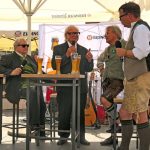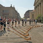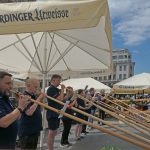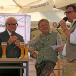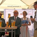 Nach einem weiteren Konzert der Alphörner auf dem Gendarmenmarkt ließ es der Wettergott dann doch „gut sein“ und zwang die Gäste bei Blitz und Donner in der Gaststube demütig unter dem frisch geweihten Kruzifix Platz zu nehmen. Dennoch ging es dann noch stimmungsvoll mit der Batzl-Blech-Musi aus Berlin bis spät in den Abend weiter. Dazwischen eine hinreißende Einlage des Berliner Blas- und Spaßorchesters „Die Tiere“. Mit Alphornklängen und einen Ständchen von Gerhild Karpf, „The Voice of Wilmersdorf“, für den Erdinger-Chef Werner Brombach fand der Abend einen klangvollen Abschluss. Am zweiten Tag der Eröffnungsfeier war dann doch wieder ein super Wetter. Bei der Aktion „ERDINGER Zauberbecher“ gab es Freibier bis zum Umfallen. Dabei konnte jeder Gast, der einen solchen Becher erwarb, diesen den ganzen Tag kostenlos wieder befüllen lassen. Zünftige bayerische Wirtshausmusik lieferten dabei die O‘-Treibern, einem Trio vom „Verein der Bayern in Berlin“. Dazwischen wieder der wohltuende Klang der Alphörner.