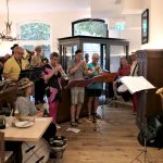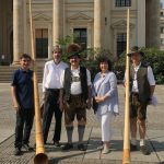 Bereits am frühen Morgen des ersten Tages haben sich die Trachtlerinnen und Trachtler vom Trachtenverein „Almenrausch“ aus Rossholzen/Samerberg nach Berlin auf den Weg gemacht, um die Feier bayerisch-traditionell zu umrahmen. Mit dabei, Toni Hötzelsperger, der Top-Journalist für bayerisches Brauchtum, in und außerhalb Bayerns. Der Toni berichtete unmittelbar vor Ort in seinen „Samerberger Nachrichten“ über die feierliche Eröffnung. Zum Auftakt am ersten Tag spielte die bayerische Band „Gaudi Harmonie“ aus dem Chiemgau. Mit fetzig bayerischer bis hin zu poppig moderner Unterhaltungsmusik sorgten sie für Hochstimmung von Anfang an. Dazwischen Trachtentanz, Schuhplattler, Goaßlschnalzer und Ziach-Musi von den Trachtlerinnen und Trachtler aus Rossholzen.