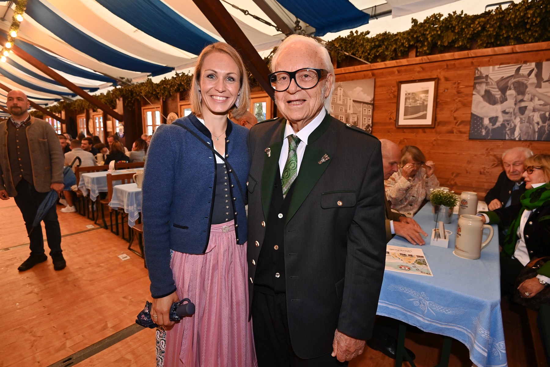Werner Brombach, Inhaber ERDINGER Weißbräu, (rechts) begrüßte Magdalena Neuner (links) und ihre ehemaligen Biathlon-Kolleginnen auf dem Herbstfest in Erding.