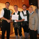 Die Stimmgabel in Bronze verlieh Leonhard Eisner an Jakob Attenberger (Flügelhorn) und Robert Angerer (Bariton), die Stimmgabel in Silber erhielten Ludwig Attenberger (Klarinette), Kathrin Attenberger (Flügelhorn) und Jonathan Baumgart (Tuba).