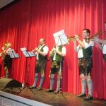 Um das turbulente Geschehen darstellen zu können, galt es viele Rollen zu besetzen, dazu gehörten folgende Personen: der Finanzexperte Volker Bauer (Benedikt Fischer), seine Frau Elke (Sabine Löhmann), der poetische Philosoph Fredi Munzert (Markus Fischer), dessen Frau Hanne (Christine Perl), Rennsportfan Dietmar Konrad (Hans Herzinger), Fußballfan Heinz Müller (Peter Thaurer junior), dessen Kumpel Lenni Breitner (Lorenz Stockinger), „Botaniker Wolle“ (Sebastian Bauer), die Finanzbeamtin Adele Falkenschrot (Anna Maria Paar) und Jan Richter, Sandras Freund (Felix Löhmann). Nicht auf, sondern vor und hinter der Bühne gab es wesentliche Unterstützungen in der Maske, bei der Technik, an der Kasse, in der Verpflegung sowie beim Bühnenbau. Bei diesem ist seit 35 Jahren Rudi Eichwaldt ehrenamtlich tätig, auch er genoss mit Paul Panzer als einem seiner Helfer den Premierenabend. Zum Priener Bauerntheater gehört es seit vielen Jahren, dass vor dem ersten und vor dem zweiten Akt die Trautersdorfer Musikanten zur Unterhaltung spielen. So wird es auch bei den weiteren Aufführungen sein, die am Mittwoch, 25. Mai, am Donnerstag, 26. Mai (Christi Himmelfahrt) jeweils um 20 Uhr im Chiemsee Saal im Haus des Gastes beginnen. Eine weitere Vorstellung mit etwas ermäßigten Eintrittspreisen gibt es am Sonntag, 29. Mai ab 15 Uhr. Karten sind erhältlich im Ticketbüro in Prien im Haus des Gastes, Telefon 08051-965660 sowie an der Kasse eine Stunde vor Spielbeginn.