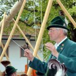 Bernau (hö) – 29,5 Meter lang war der Maibaum, der in Bernau aufgestellt, zuvor von Zweiten Trachtenvorstand Franz Praßberger junior gestiftet und im Januar von Priener Trachtlern „gestohlen“ wurde. Vierspännig mit Hansi Wallner aus Prien-Bruck und mit Hans Buchner aus Rankham brachten die Priener Trachtler den schön hergerichteten Baum wieder zurück nach Bernau. Die Verhandlungen führte auf Priener Seite Zweiter Vorstand Sepp Furtner, der auch eine von Sepp Messerer senior angefertigte Urkunde verlas. Mit der von Bürgermeister Klaus Daiber gegebenen Zusage, die Kosten für das Rosserer-Gespann, für das Wachterbier und für eine gescheite Brotzeit erklärten sich die Priener Trachtler mit ihrem 1. Vorstand Klaus Löhmann bereit, beim Aufstellen mit anzupacken. Zu den Klängen der Musikkapelle Bernau unter der Leitung von Albert Osterhammer legten rund 60 Priener und Bernauer Männer Hand an, um auf die Kommandos von Jakob Müller zu hören. Letztlich kam der Maibaum gut in seine Halterung und er ziert fortan die schöne Ortsmitte von Bernau mit Pfarrkirche „St. Laurentius“ und „Alter Wirt“.