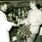 Repros: Hötzelsperger – 1. Hans-Dieter Dummert (re.) empfängt am 7. Oktober 1988 den neuen Priener Pfarrer Josef Preis.