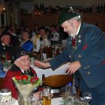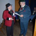 Ich lernte meine Frau beim Tanzen kennen. Ich brachte sie nach Hause und wir stellten fest, dass wir gegenüber wohnten. Übrigens waren das die einzigen beiden Häuser, die den Abwurf einer Luftmiene im Zweiten Weltkrieg einigermaßen unbeschädigt überstanden. Bald darauf wurde ich in dem Lokal mit meiner Tanzkapelle engagiert. Am Eröffnungsabend hatte ich mein Schlagzeug aufgebaut, da kam die Nachricht, der Schlagzeuger ist erkrankt und kann nicht kommen. Was tun – ein unbesetztes Schlagzeug ist sehr plamabel. Da hatte ich die Idee, meine Tanzpartnerin soll sich an des Schlagzeug setzen und wenigstens so zu tun als ob. Sie willigte ein, setzte sich ans Schlagzeug, was sie bisher nur von weiten kannte – und spielte, als hätte sie noch nie etwas anderes gemacht. Somit war sie engagiert wir spielten zusammen, verlobten uns und heirateten. Jetzt sind wir 63 Jahre verheiratet, machen 63 Jahre Musik zusammen und pflegen Tracht und Brauchtum zusammen. Ohne ihrer Mithilfe wäre vieles, ich möchte sagen fast gar nichts, möglich gewesen.
