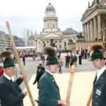 Bayerische Brauchtumsbeiträge für 60 Jahre BRD in Berlin – Berlin-Chiemgau (hö) – Hautnah konnte eine 50köpfige Brauchtums-Delegation aus Weißbach an der Alpenstraße, Unterwössen und Schleching im Chiemgau sowie aus Übersee am Chiemsee bei den Feierlichkeiten „60 Jahre Bundesrepublik Deutschland“ in Berlin dabei sein.