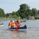 Nachdem die Anfangsschwierigkeiten beim Bootsteuern überwunden waren, testeten die Schüler ihr neues Können mit viel Spaß in einem Kanu-Wettrennen. Foto: Till Barmeyer