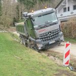 Innerhalb weniger Tage kam an gleicher Stelle in Prien-Prutdorf ein schwerer LKW ins Rutschen und landete im Graben. Nach einem Papiermüll-Entsorger war es diesmal ein mit Gartenerde beladener LKW. Da dieser noch ziemlich neu war, wollte der Fahrer nicht zu nahe an die Hecken kommen, doch dann gab der seitliche Untergrund nach. Ein 360 PS starker Traktor des nahen Lohnunternehmens Pertl aus Schmieding konnte den LKW wieder befreien.