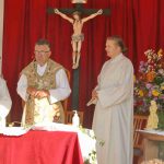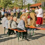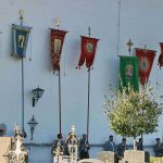 Dies gilt auch für das was uns fremd ist. Pfarrer Rudolph schloß sich dem Dank gleich an. So bei der Mesnerfamilie Leitner für die Vorbereitung am Altar und in der Kirche, bei den geschickten Händen, welche die Erntekrone gefertigt hatten, dem Altardienst und den Kindern, welche den Gottesdienst mitgestalteten. Ein weiterer Dank galt der Musikkapelle, welche außerhalb des Friedhofs Aufstellung nahm. Den weitern festlichen Rahmen bei der Meßfeier bildete die Ehrenformation der Gebirgschützen und die Fahnenabordnungen der Vereine. Auch wenn keine Prozession sein konnte, so reihten sich die Fahnenträger an der Nordseite der Kirche auf.