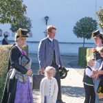 Die Fotos zeigen die Erntekrone, Messnerin Gertraud Leitner mit der Dorfbäuerin Grießenböck auf deren Hof die neue Erntekrone gebunden wurde, die Messnerin mit der von Amalie Scherer geschaffen Butterfigur, Familie beim Kirchgang