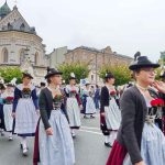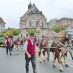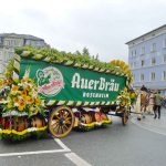 Farbenfroh und fröhlich zeigte sich der Festzug anlässlich des heurigen Erntedankfestes in Rosenheim. Der Festzug führte von der Stadtpfarrkirche St. Nikolaus zur Loretowiese und dort hinein in das Flötzinger Festzelt und in die Auerbräu Festhalle, beide Brauereien waren mit ihren Gespannen an der Schönheit des Festzuges beteiligt.