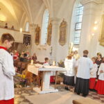 Ein festlicher Erntedank-Gottesdienst wurde in der schön mit Erntekrone sowie mit Garten- und Feldfrüchten geschmückten Filial- und Wallfahrtskirche von St. Salvator mit Pfarrvikar Amit Sinha Roy gefeiert.