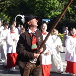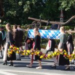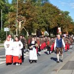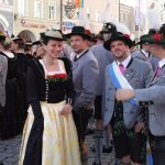 Nach dem Gottesdienst zog der farbenfrohe Festzug durch die Rosenheimer Innenstadt vorbei an vielen Schaulustigen zum gemeinsamen Mittagsessen auf dem Herbstfest.