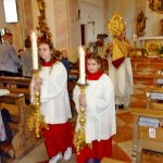 „Wer genießen kann, ist genießbar.“ Dies waren die Worte von Pfarrer Martin Straßer beim vom Kirchenchor feierlich umrahmten Festgottesdienst an Erntedank in der Reit im Winkler Pfarrkirche St. Pankratius. Es sei nicht selbstverständlich, sondern etwas Besonderes, wenn man sich dankbar über die von Gott gegebenen Gaben freuen könne, wie es auch in diesem Jahr wieder der Fall gewesen sei. „Der Wohlstand, den wir erleben dürfen, ist ein Geschenk und eine Gnade“, so seine Worte. Sein besonderer Dank galt den Kindern der dritten und vierten Klasse der Grundschule für ihr liebevolles Schmücken des Altars mit Früchten. Anstelle der wegen schlechtem Wetter ausgefallenen sonst an Erntedank anschließenden Prozession durch den Ort wurde nur der vierte Altar mit der Aussetzung des Allerheiligsten und kleinem Umgang in der Kirche mit den Ministranten und der Bruderschaft und dem abschließenden eucharistischen Segen zelebriert.