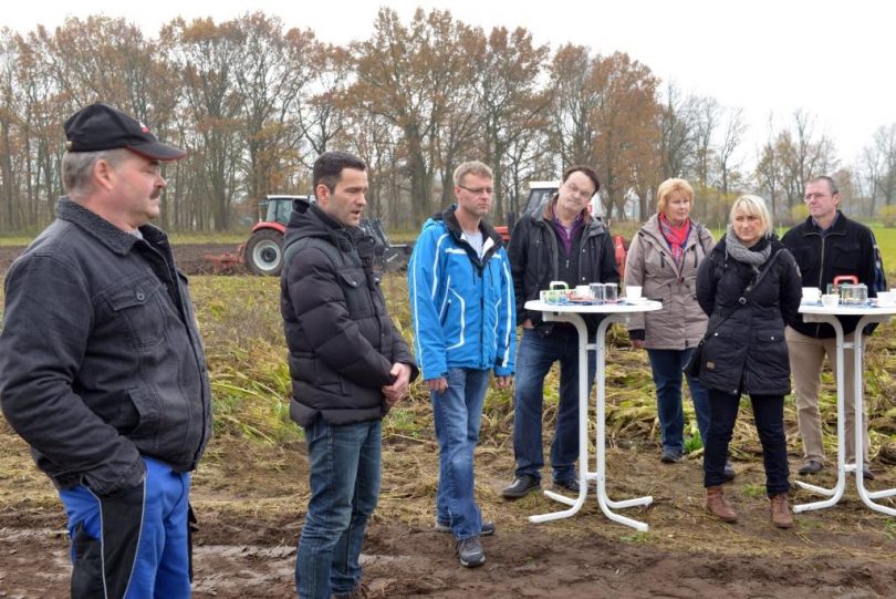 Die Ernte des bekannten Spreewälder Meerrettichs ist angelaufen: Geschäftsführer von Spreewälder Gemüseanbau- und Verarbeitungsbetrieben und der Spreewaldverein besuchten am Donnerstag, den 16. November 2017 gemeinsam mit Medienvertretern die kürzlich begonnene Ernte des Spreewälder Meerrettichs. Gastgeber des Pressetermins ist Dirk Richter, der mit seinem Gemüsebetrieb in Klein Klessow ansässig ist. An seinem Meerrettichfeld diskutierten Experten, Medien und Gäste die Herausforderungen der diesjährigen Erntesaison. Der hiesige Meerrettichschlag ist rund 1,3 Hektar groß. Darauf wird gegenwärtig mit Unterstützung der Familie, Freunden und Bekannten die Ernte des Meerrettichs bewältigt. Die Ernte erfolgt bis Ende November bzw. bis zum Einsetzen der ersten Fröste auf zwei Drittel der Gesamtfläche. Der Rest wird im Frühjahr des Folgejahres geerntet. Damit ist die frische Rohware über einen längeren Zeitraum für die Verarbeitungsbetriebe verfügbar.