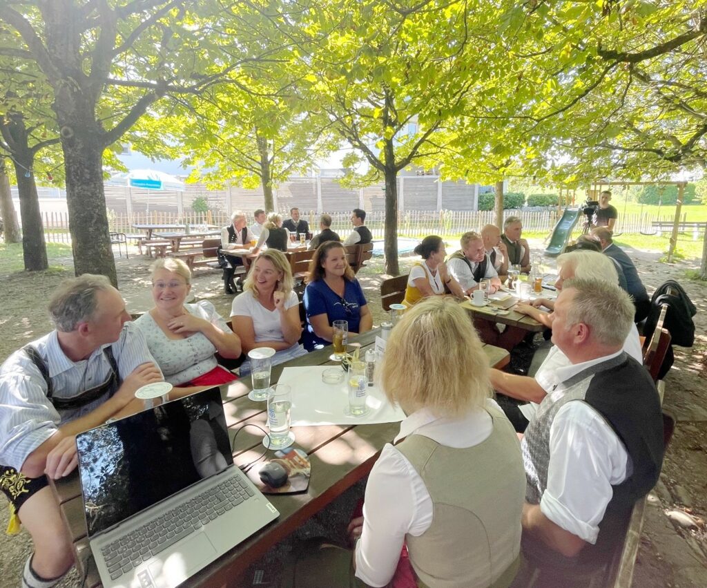 Die Bekanntheit, die Beliebtheit und der Umfang des Rosenheimer Bauernherbst hat in den zwei Jahrzehnten stetig zugenommen und hat sich auch von den Corona-Einschränkungen bestens erholt. Darauf wies RegRo-Vorsitzender Friesinger bei seinen Willkommensgrüßen hin. Vor allem das unter anderem über Gemeinden, VR-Banken und Tourismusstellen der Bauernherbstkalender kostenlos bezogen werden kann und das von seiner Mitarbeiterin Suzi Strigl zusammengestellte Programmheft zeigt die hervorragenden Veranstaltungen auf, dass sich immer mehr Veranstalter bewusst mit regionalen Angeboten in Zusammenhang mit Brauchtum, Handwerk, Gastronomie, Tourismus und Landwirtschaft beschäftigen. Hervorgehoben im Programmheft sind die Bauernmärkte, die Bergbahnen, Urlaub auf dem Bauernhof, die App „Frisch vom Hof“, die Hof-Cafes und die heuer neun mitmachenden Bauernherbst-Wirte. Erstmals dabei ist auch der Gasthof Hohe Asten in der Gemeinde Flintsbach. Dessen Wirtsleute Christa und Peter Astl informierten über ihre vielfältig eingesetzten Erzeugnisse von Deutschland höchst gelegenem ganzjährig betriebenen landwirtschaftlichen Milchviehbetrieb. Christina Pfaffinger, stellvertretende RegRo-Vorsitzende und Geschäftsführerin des Tourismusverbandes Chiemsee-Alpenland erklärte den Rosenheimer Bauernherbst mit seinen jetzt 21 Jahren als endgültig volljährig und fügte hinzu, dass laut einer Umfrage 87 Prozent der Urlaubsgäste regionale Produkte genießen wollen und dass regionale Köstlichkeiten auch Grundlage für Urlaubsentscheidungen sind.