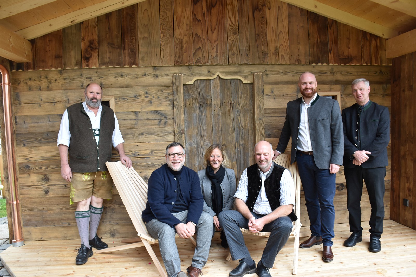 von links Bürgermeister Josef Loferer auf den Stühlen Michael Seebauer und Thomas Pletschacher in der Mitte Elisabeth Keihl, rechts Konrad Baur und Pfarrer Martin Straßer