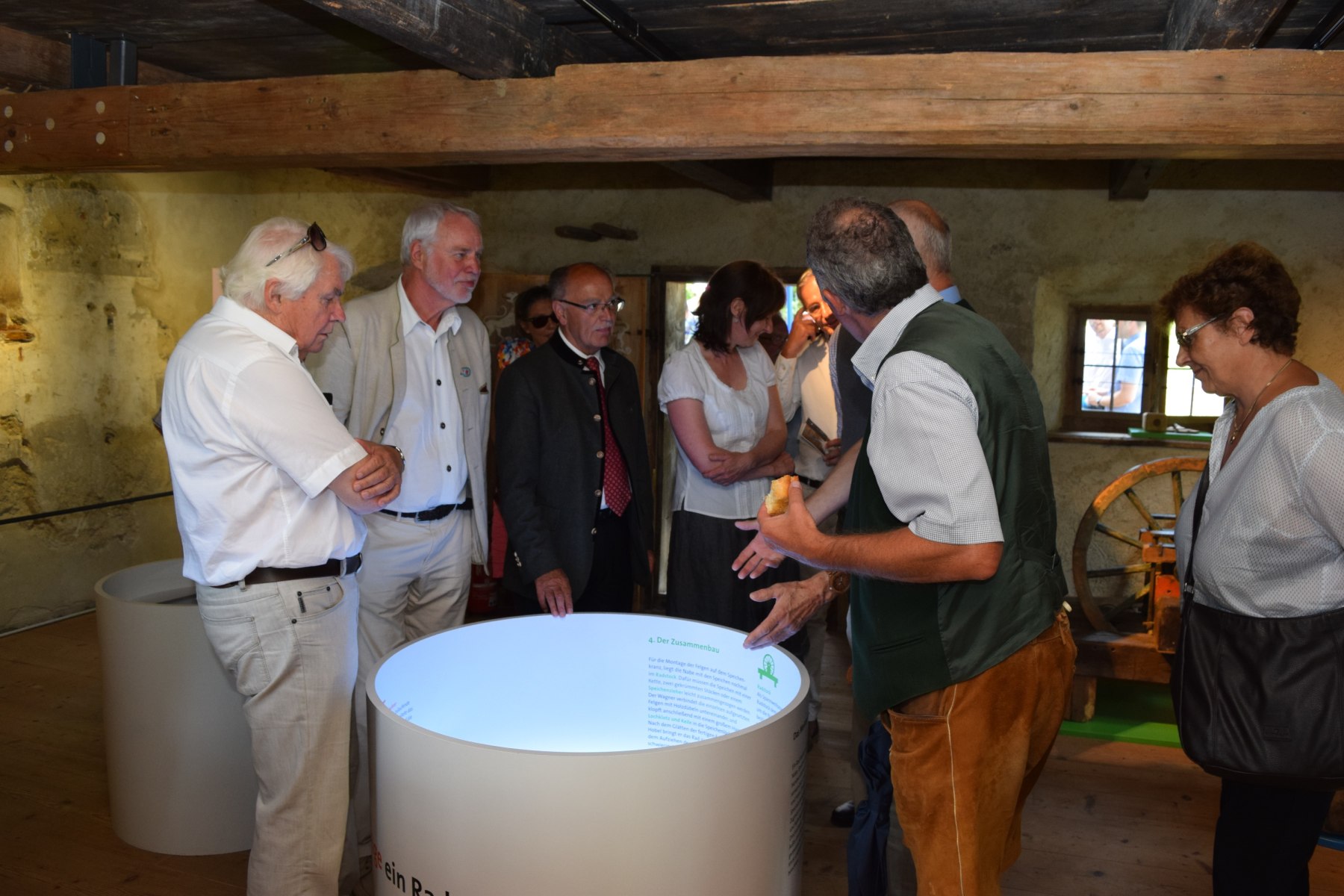 Bezirkstagspräsident Josef Mederer beim Rundgang durch die Werkstatt. © Bezirk Oberbayern, Bauernhausmuseum Amerang