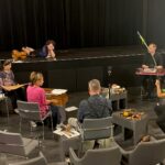 mit Instrumenten, die entweder keinen Strom benötigen, wie etwa die Bratsche (Flora Geißelbrecht), die chinesische Harfe (Ming Wang), oder Videoprojektoren (Mersolis Schöne), die mit durch Sonnenenergie geladene Akkus von der Steckdose unabhängig sind. Dieses im dunklen Kinosaal musikalisch subtil Auf-einander-zu-Gehen war ein spannender Auftakt.