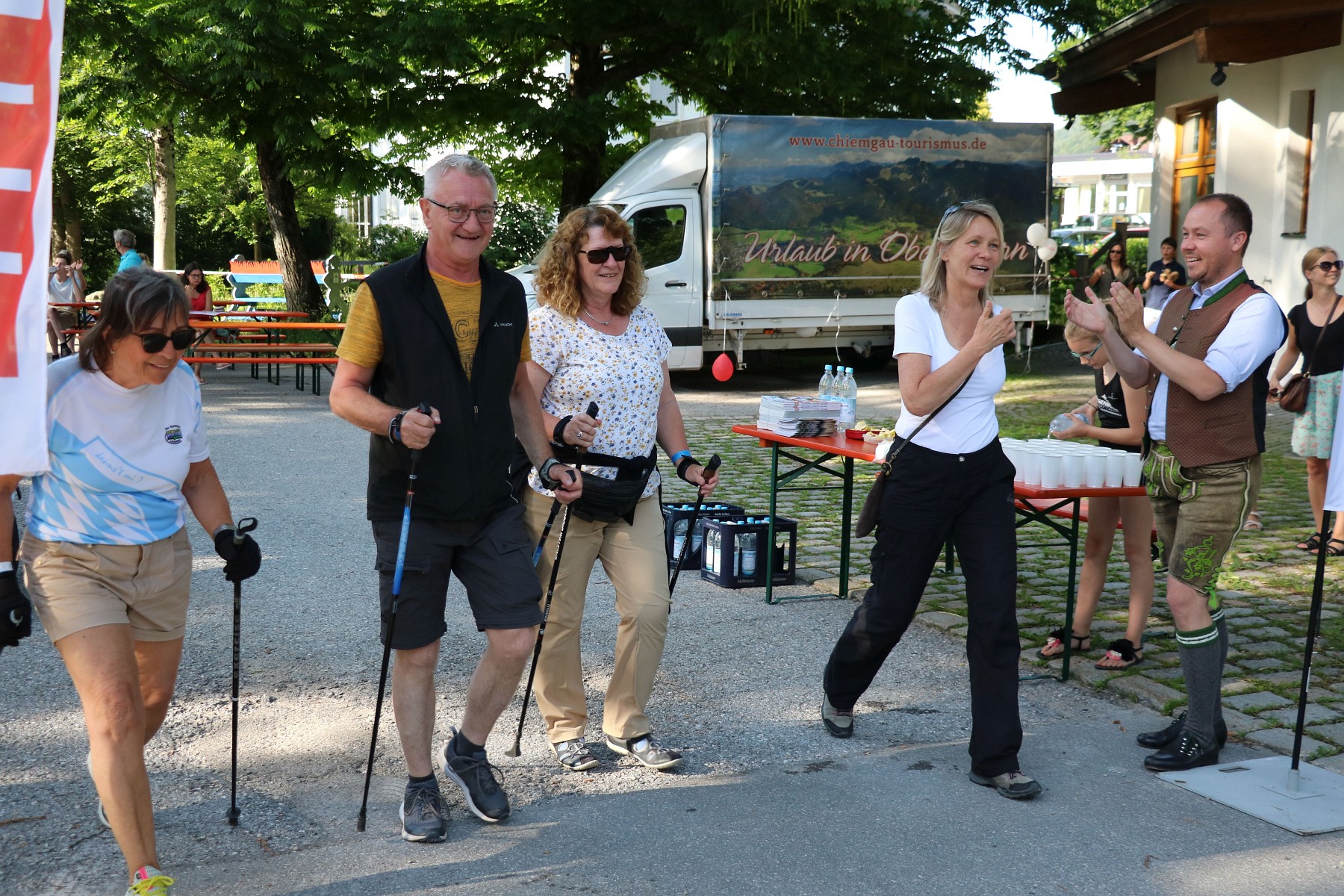 Sie trieben beim ersten Aschauer Bankerllauf das Feld vor sich her: die Geher und Nordic Walker