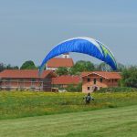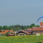 Fotos: Hötzelsperger – Landung des Gleitschirmfliegers mit der Kirche von Grainbach im Hintergrund