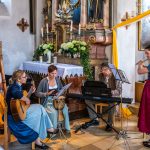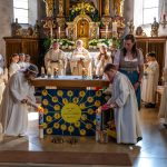 Musikalisch gestaltet wurden beide Messen vom Organisten Herrn Gieck am Keyboard und an der Kirchenorgel, von der Schulrektorin Astrid Gegenfurtnter, der Klassenleiterin Ariane Neuhauser, der Harfenistin Beate Schweiger, Vroni Geißler und Isabella Irger an der Querflöte sowie Wimmer Seppi an der Diatonischen. Die Predigt hielt Günter Schmitzberger mit dem Hauptgedanken: „Jeder von uns ist ein Sonnenstrahl Gottes und darf mit seinem Tun in die Welt hineinleuchten. Jesus schenkt und in der Heiligen Kommunion immer wieder die Kraft dazu.“