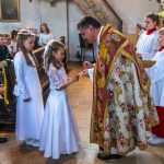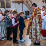 Abschluss fand der Tag mit einer abendlichen Dankandacht (Organist Hubert Huber), in welcher Schmitzberger den Erstkommunionkindern im Namen der Pfarrei ein Bronzekreuz zur Erinnerung an dieses Fest überreichte.