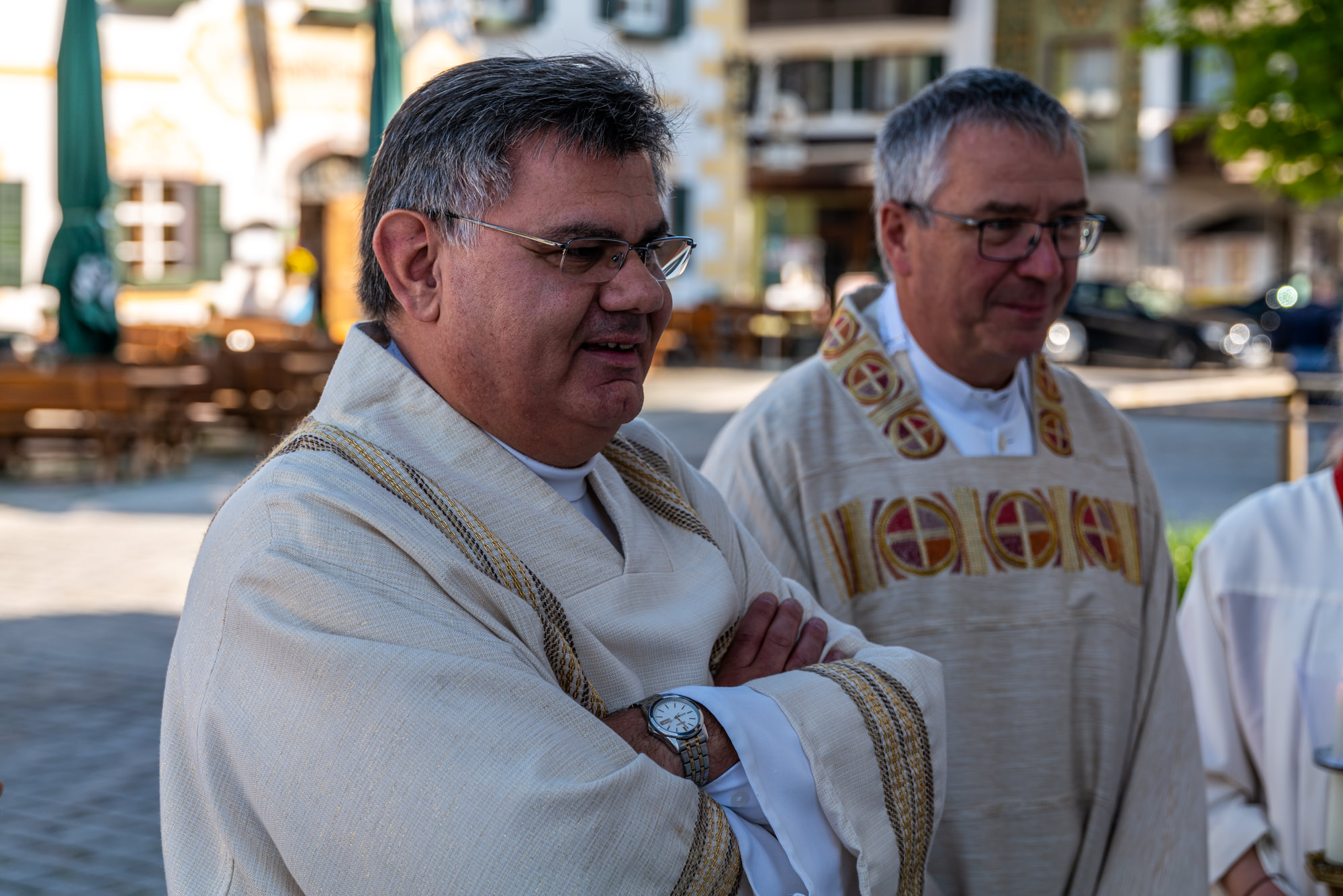 Erstkommunion auf dem Samerberg 2022: Pfarrer Robert Baumgartner (re) und Diakon Günter Schmitzberger (li)